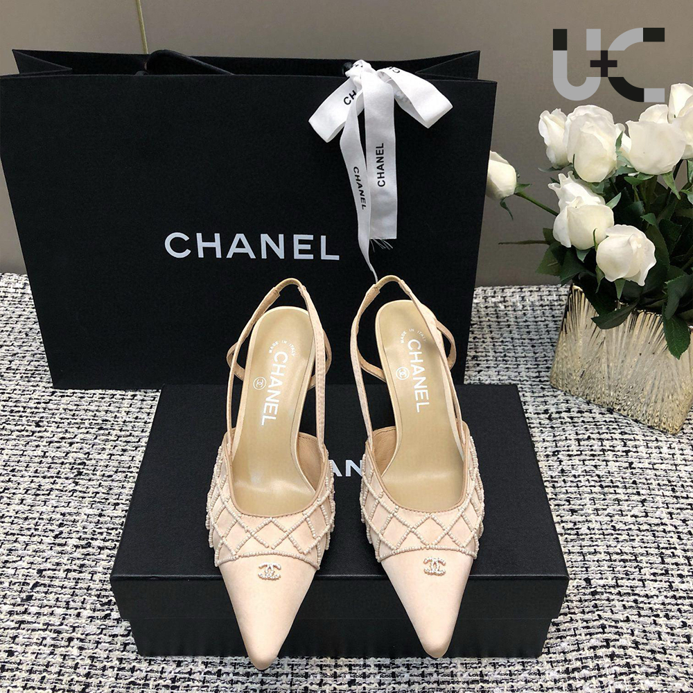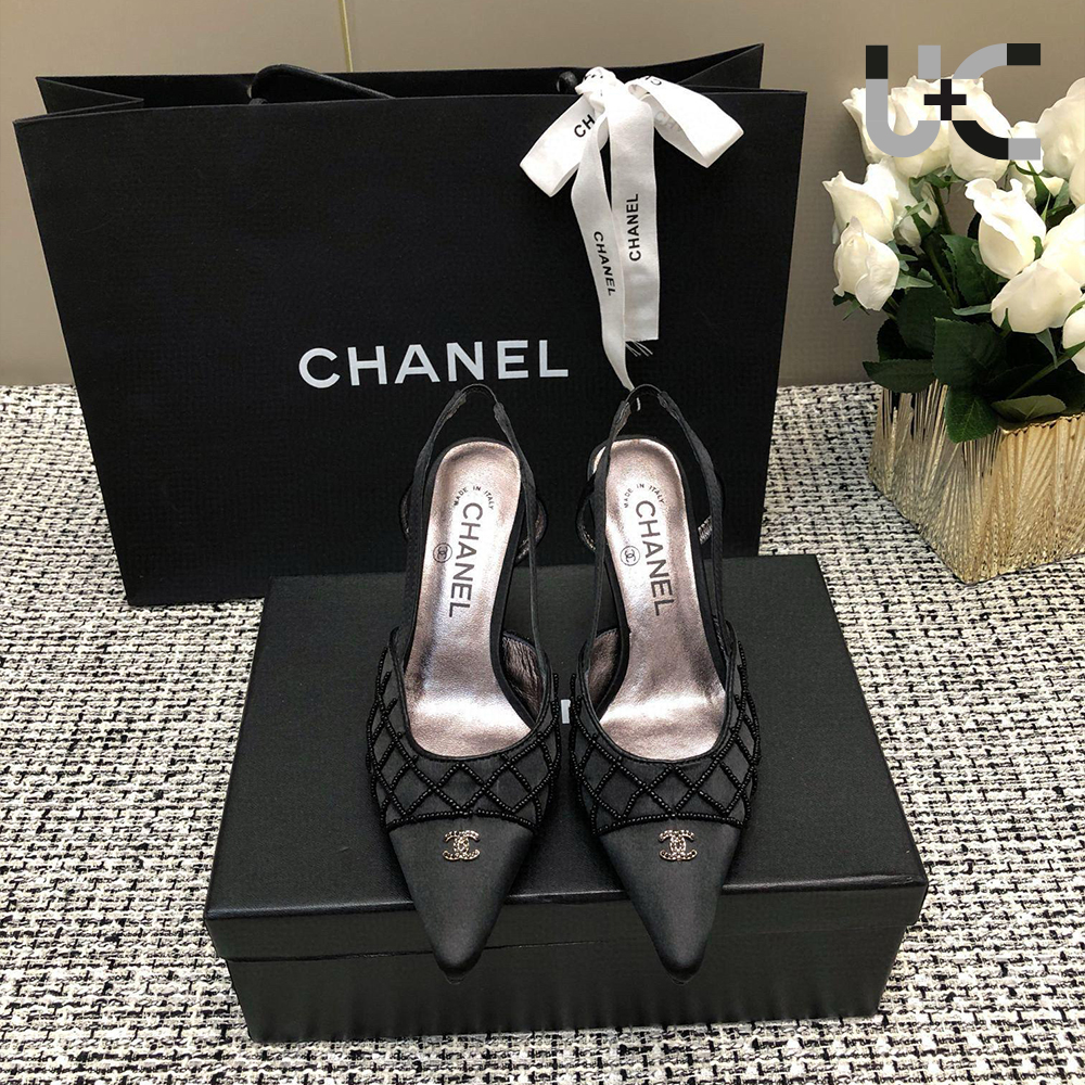 CHANEL Satin - Rhinestone Bow at Heels (Replica)