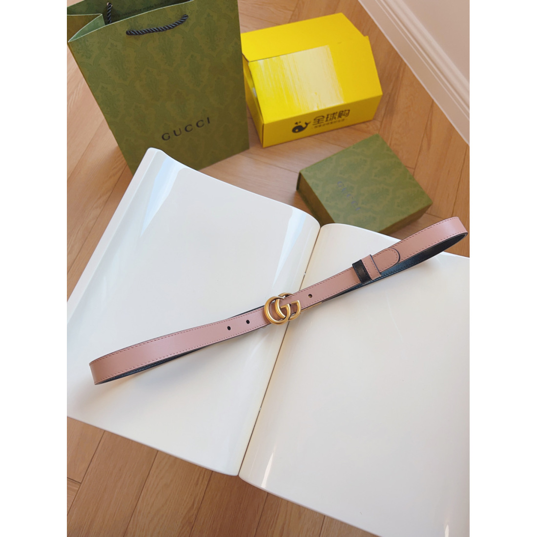 Gucci Imported Calfskin Apricot Bottom Vintage GG Swivel Buckle Double Sided/Cuttable 20MM